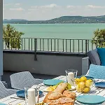 Una cocina dispone de un hervidor eléctrico, nevera y un horno para el uso de los huéspedes. El restaurante Don Benito Étterem és Pizzéria sirve comida italiana y está a aproximadamente 5 minutos en coche. Los huéspedes pueden llegar fácilmente a este alojamiento frente a la playa desde el Aeropuerto Hévíz-Balaton, que está a 55 km. En el alojamiento ofrece alquiler de bicicletas, y la zona es popular para practicar actividades náuticas, piragüismo y equitación.
